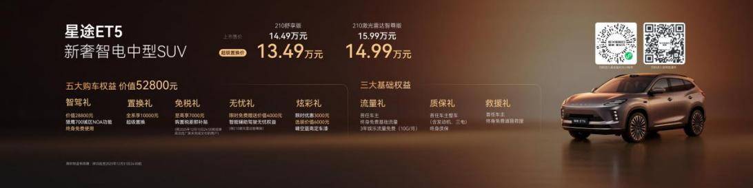 新車共推出210舒享版、210激光雷達智尊版兩款配置,官方指導價14.49萬元-15.99萬元,超級置換價13.49萬元-14.99萬元以誠意滿滿的價格回饋用戶,并重磅宣布獵鷹700城區NOA功能。更有價值52800元的五大限時購車權益,部分權益限時享受,欲購從速!
